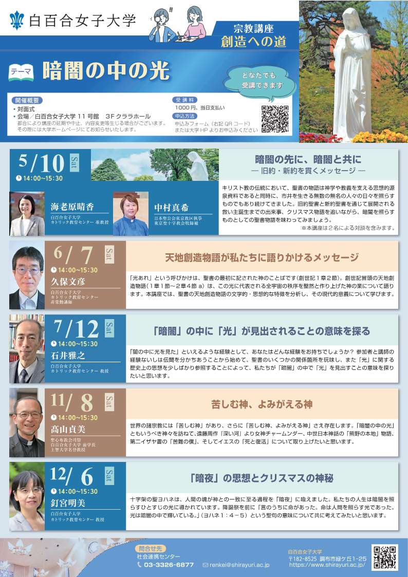 →大学HP https://www.shirayuri.ac.jp/service/extention/shukyo/