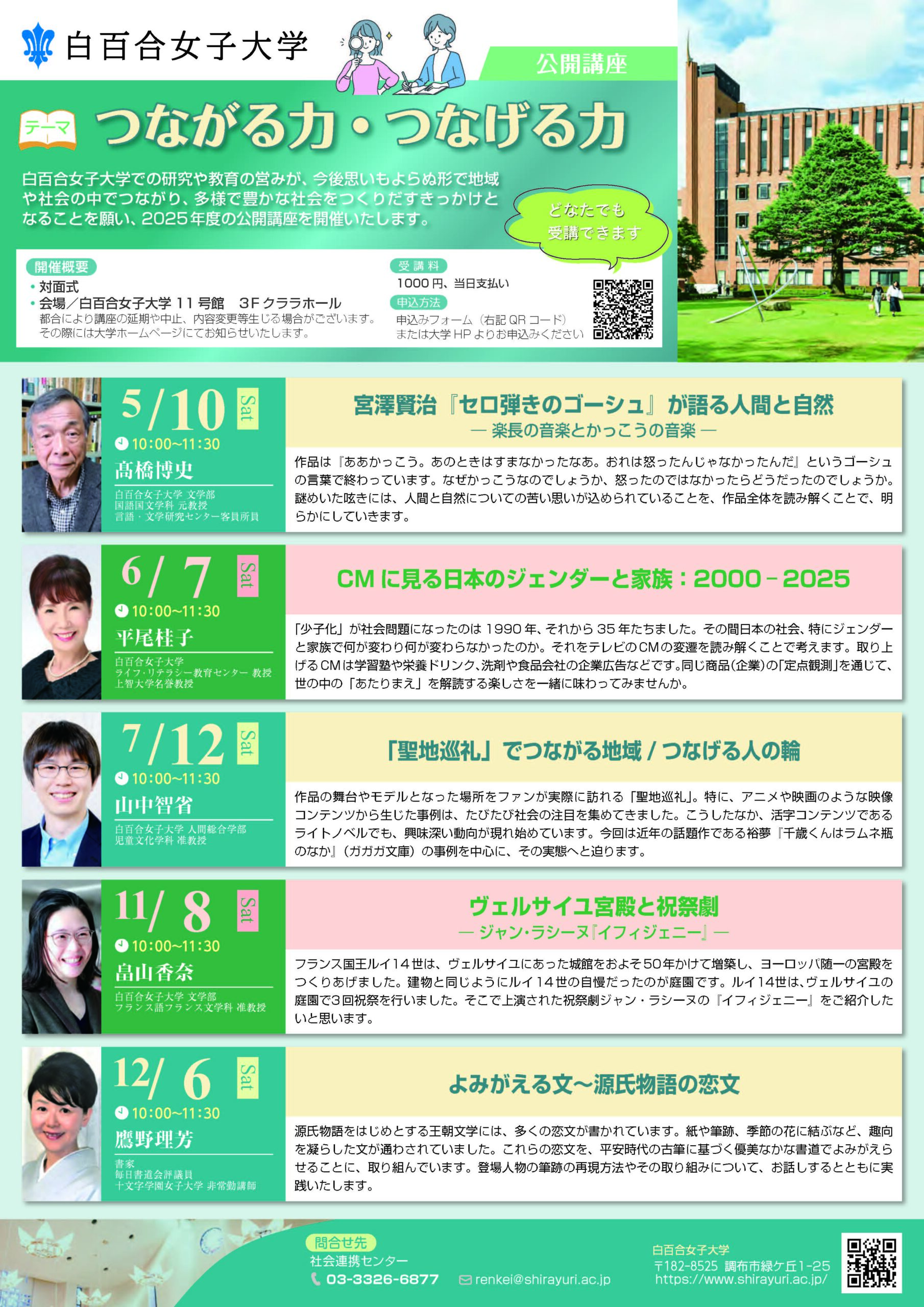 →大学HP https://www.shirayuri.ac.jp/service/extention/list/