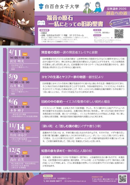2026年度 公開講座・宗教講座 開講のお知らせ